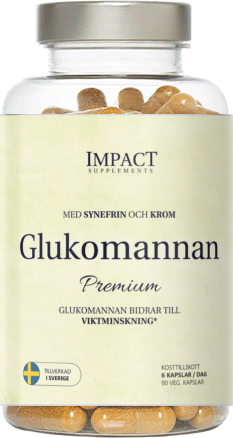 Glukomannan Premium är ett kosttillskott som kombinerar glukomannan, betaglukan, krom och synefrin för att bidra till viktminskning i samband med en energibegränsad kost.