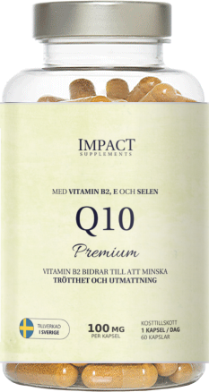 Q10 Premium är ett kosttillskott som innehåller koenzym Q10, vitamin B2, vitamin E och selen. Produkten bidrar till att skydda cellerna mot oxidativ stress och till att minska trötthet och utmattning.